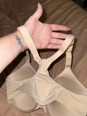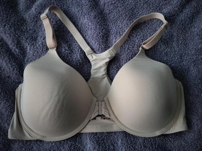 FRONT AND CENTER COMFORT Everything we do starts with you, and this sleek racerback bra is proof of that. Clean and smooth with no elastic touching the skin, this underwire bra is invisible under any outfit, making it perfect for everything from tees to tanks to dresses. The moisture-wicking fabric keeps you feeling cool and comfy all day, while the front-adjustable straps stay in place - no slipping, no fuss. Plus, the front closure makes it super easy to put on and take off. With support that keeps up, comfort that lasts, and the fashion versatility you get from a racerback, this full-coverage bra is about to become your new favorite.
