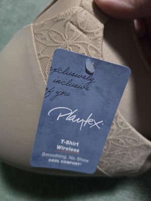 COMFORTABLE SUPPORT YOU CAN LIVE IN Bringing together everyday comfort with just the right touch of smooth style, this Playtex wireless t-shirt bra disappears beneath all your favorite tops. Lined foam cups and a comfy bottom band provide smooth support, and you’re going to love the pretty geo lace detailing and straps. No-slip comfort straps adjust for fit flexibility while the moisture-wicking fabric means you stay cool, even when your day is heating up. Perfect under tees or dressed-up looks, it’s the must-have bra that’s both comfy and flattering - because you deserve both