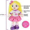 Ready for excitement and adventure, let Eimmie become your child's new best friend. Our 14 Inch Eimmie rag doll is the perfect size for small hands and features beautiful blond hair and blue eyes. Her embroidered facial features make this doll safe for your little ones with no small parts to come loose. Eimmie comes dressed in an adorable skater dress with a pink skirt, a white top accented with purple trim and cute unicorn graphic. Her outfit is completed with a pink hair bow, pink striped socks and purple shoes. As soft as she is cute, she is ready to be hugged close and join in on the fun where ever your little one may go. With a wide cast of exclusive characters available from Playtime by Eimmie and Sharewood Forest Friends our goal is to inspire your children to develop their imagination and cultivate their creativity with play. Clothing is not removable. Spot clean only.