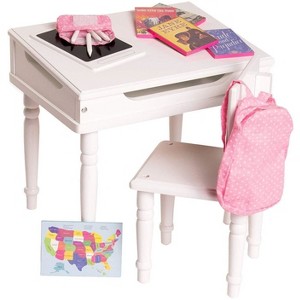 [This review was collected as part of a promotion.] My daughter just started school, so this doll set was the best gift for her. She loves it. It comes with a desk that has the storage area to store the small items as well as a chair with backpack full of goodies. The furniture is very well made for doll furniture. It is sturdy and the instructions were very easy to follow. The desk and chair fits any 18 inch doll, or similar sizes. Even some baby dolls fit fine at the desk. It is a fun toy to get for a girl who loves her dolls. 100 percent recommended and would buy it again.