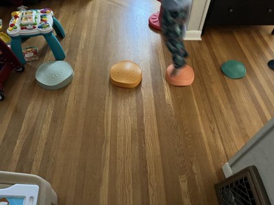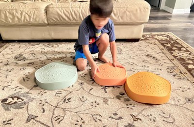 Who would have thought indoor stepping stones would be so fun?! My kids have all really enjoyed playing with these stepping stones. It does say 3+ up but my 15 month old enjoys stacking these. My 6 year old likes setting them up and jumping from stone to stone. They are nonslip on my hard floors so far. They seem well made and easy to wipe down to clean. These are a really great open ended toy.