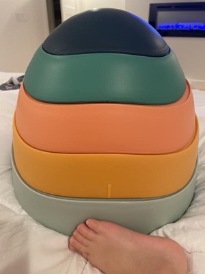 Cute stepping toy. Kids like to use them for the floor is lava and as steps in pretend play. Seems durable and is non slip. Like that it stacks inside one another for storage. Kept kids busy for a bit. A win!