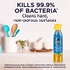 Pledge Antibacterial Multisurface Cleaner Spray cleans sealed hard non-porous surfaces by killing 99.9% of bacteria*. This household cleaner quickly and effortlessly kills certain bacteria* on high-touch, hard non-porous surfaces listed on the bottle, without a residue.