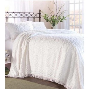 Plow & Hearth Full Wedding Ring Tufted Chenille Bedspread White