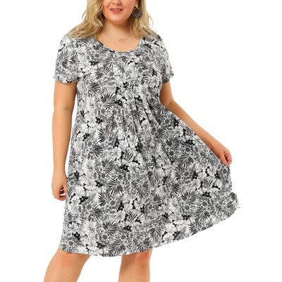 Product Name: Plus Size Floral Short Sleeve Knee Length Dress Black 3X -White Mark