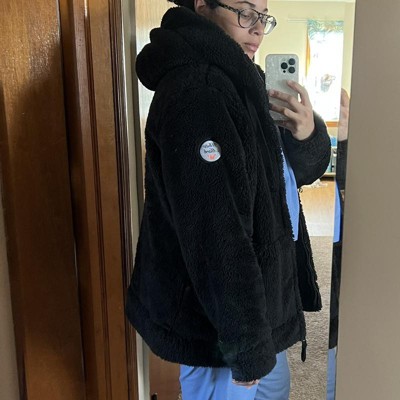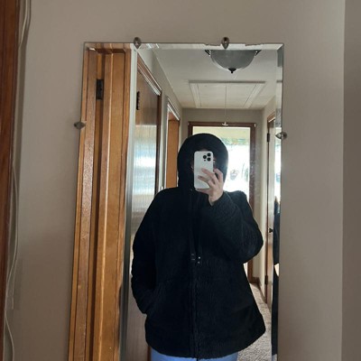 Product Name: Plus Size Hooded High Pile Fleece Jacket Black 1X- White Mark