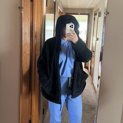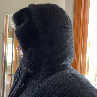 It took me FOREVER to find the right Teddy jacket that I liked. I was looking for one that was large enough, had a hood, zipper, pockets, and zipped all the way up to cover my neck! I was able to grab it on Black Friday sale, and yes while a little pricey, for me it was worth it. It’s pretty warm, I wore it out in below 40 degree weather to test it out. I live on the east coast. I wore a fleece pull over underneath but when the temp is below 40 I can feel a little bit of cold/breeze. I followed the measurements and ordered 3x on purpose. My bra size is usually 40D but I wanted it that big so I could wear my work sweater underneath, and they it fits perfectly.