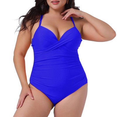 - DESIGN FEATURES of this Plus Size Tummy Control Swimsuit V-neck one-piece swimsuit with leopard print top section and solid green bottom, perfect for plus size figures
