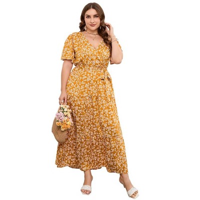 - Plus Size Summer Dress Women?s Puff Sleeve V-Neck Wrap Midi Dresses A-Line Flare Casual Short Dresses