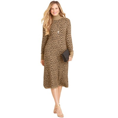 Product Name: Plus Size Long Sleeve Rib Midi Sweater Dress Brown 2X -White Mark