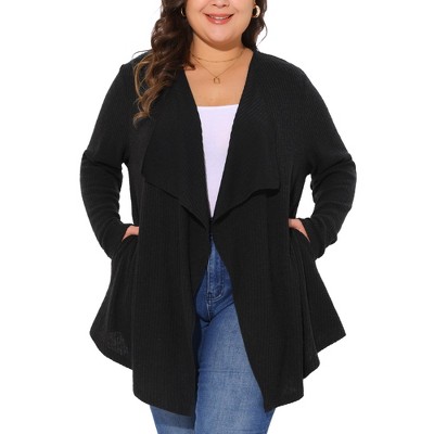 Product Name: Plus Size Open Front Knit Cardigan 3/4 Sleeve Lightweight Breathable Casual Sweater Cardigan Black 3XL
