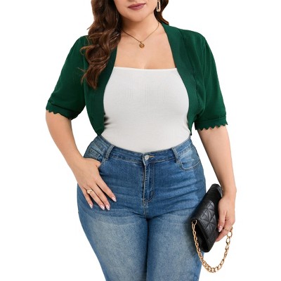 Plus Size Open Front Knit Cardigan 3/4 Sleeve Lightweight Breathable Casual Sweater Cardigan