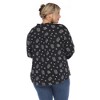 Product Name: Plus Size Pleated Long Sleeve Leaf Print Blouse Black 1X - White Mark