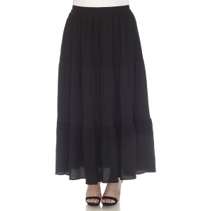 Product Name: Plus Size Pleated Tiered Maxi Skirt Black 3X -White Mark