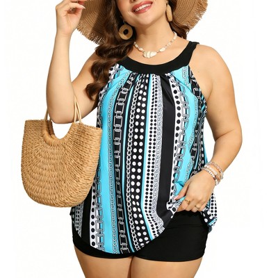 Women's Plus Size V Neck Sleeveless Floral Flowy Top with Shorts 2-Piece Tankini Sets - Agnes Orinda