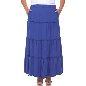 Product Name: Plus Size Tiered Maxi Skirt Royal 1X - White Mark