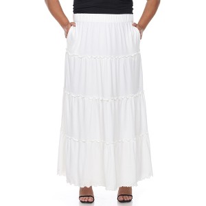 Product Name: Plus Size Tiered Maxi Skirt White 3X - White Mark