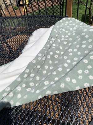 Bring snuggly comfort to baby's day by wrapping them in this Floral Plush Baby Blanket from cloud island™. Crafted from 100% recycled polyester microplush fabric, this printed blanket feels soft against their skin while helping them stay warm while indoors, as well as during stroller rides or road trips. Adorned with allover tiny white floral print on a green background, it makes a cute addition to your baby's nursery decor.