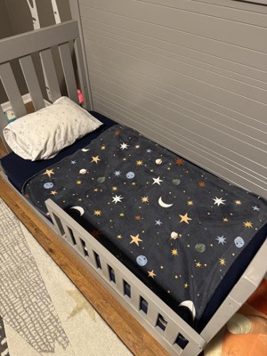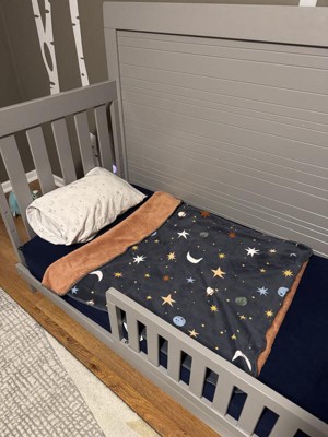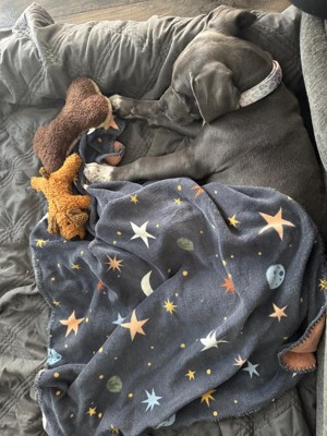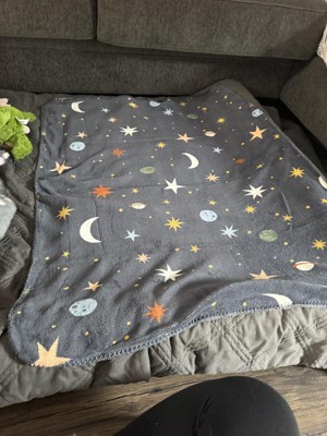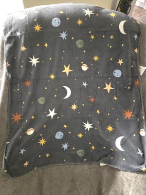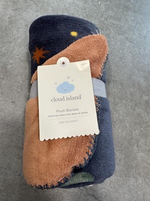 This Print Plush Blanket from Cloud Island™ is a must-have for keeping your little one cozy during stroller rides and snuggle or cuddle time. This baby blanket is adorned with a vibrant space print on a dark backdrop, featuring blanket-stitched edging for added flair. Made of 100% recycled polyester with a soft, fuzzy surface, the plush blanket is perfect for tummy time, car rides, or swaddling and is conveniently machine washable for easy care.