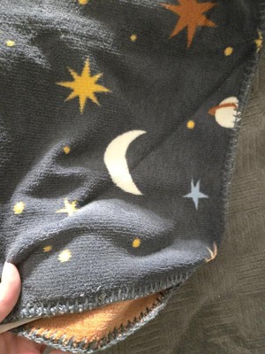 The cloud island Plush Blanket is so adorable! The pattern is cute! I love the stars, moon and planet pattern. One one side is the solar system pattern and on the other side it is a light orange color. This blanket is perfect for all little ones. I love how soft this blanket is. I definitely recommend it.