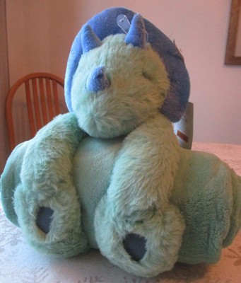 This plush blanket wrapped in a soft dinosaur toy is really cute! It's a 2-piece set that includes a huggable toy along with a blanket, both made of a super soft material! A child can use it in bed, while lounging in the family room, or on road trips in the car. It's also perfect to take along on a sleepover at Grandma's!
