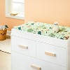 This Fauna Plush Changing Pad Cover from cloud island™ will provide your little one with an oh-so-soft surface during changes. This printed changing pad cover is designed to fit standard-size changing pads and is adorned with a vibrant flora and fauna print on a plush light green background for a lively look. Plus, it has subtly contoured sides to help keep leaks from spilling over the pad.