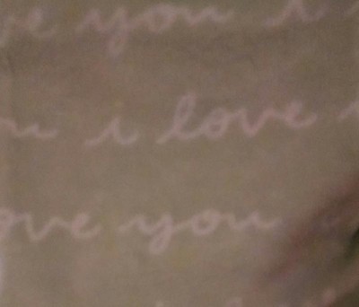 I love how soft this is! Even after I washed it, it stayed soft. I hope it stays like that. The only part I was sad about was how light the mint green is and how much the white I love yous blend in with it.