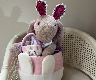 This plush bunny Easter basket is ready to hop into your child's heart This adorable basket from Plushible keeps all your springtime sweets in one place, making it a great gift for any child in your life. Children will love showing off their new basket with friends long after the treats are gone 7.5 inches deep: plenty of room for that easter egg hunt!