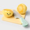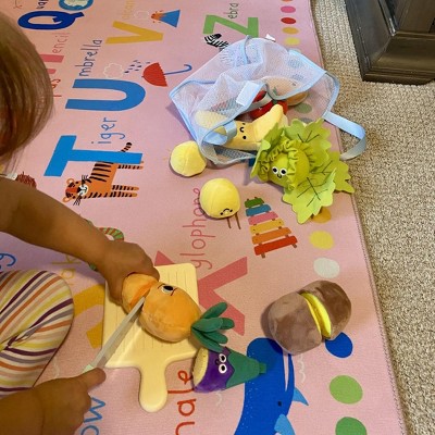 Get your little one familiar with all sorts of food during playtime with the Plush Food Play Set from Gigglescape™. This 27-piece play set features soft plush foods, like a banana, carrot and kiwi, that your little one can pull apart and chop with the included cutting board and knife. It has learning cards in both English and Spanish, and it comes in a mesh storage bag with top handle for convenient storage and cleanup.