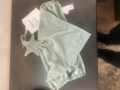 This security blanket is very cute. The velour fabric of the top is soft and a pretty green, the entire underside is satin making it a sensory dream for my kid who loves satin bindings. It is a small compact size making it an easy take along comfort item.