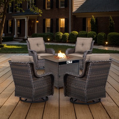 POCASSY 5-Piece Patio Furniture Set with Fire Pit Table, Outdoor Seating Set with 50000 BTU Fire Pit, All-Weather Wicker Patio Bent Armchair