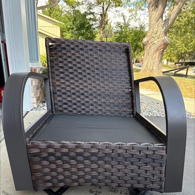 POCASSY 5PCS Outdoor Patio Furniture Set All-Weather Wicker Couch with Patio Swivel Rocking Outdoor Chairs and Ottomans, Patio Sofa Set for Backyard