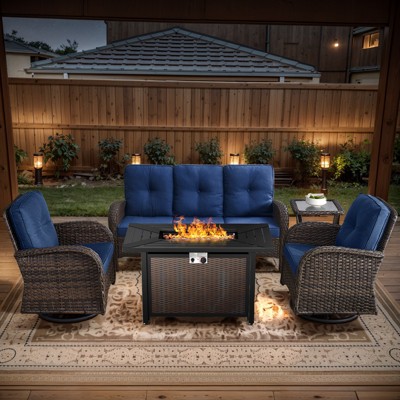 4 Pieces Patio Furniture Set with Fire Pit Table, Outdoor Sofa Set with 50000 BTU Fire Pit All Weather Wicker Patio Couch and Club Chair