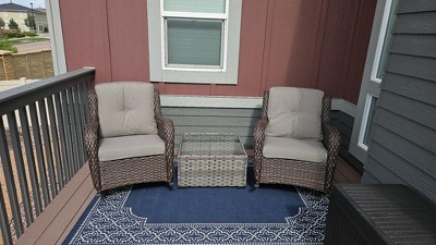 Chairs are very nice, however the runners rust in the rain. These chairs are sold as outdoor furniture, so this is not acceptable. Very disappointed in this product. Would not buy from this seller again.