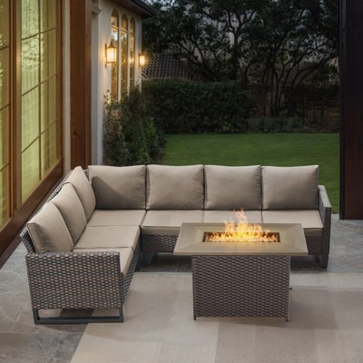 Introducing the POCASSY Outdoor Sectional Sofa "C the ultimate upgrade for your backyard hangouts! This stylish patio set features a spacious 94.4-inch wide L-shaped sectional sofa, designed for comfort and relaxation. With a sturdy powder-coated steel frame and handwoven PE wicker, it!-s as durable as it is elegant. Whether you're cozying up around a fire or enjoying drinks with friends, this sectional couch will elevate your outdoor space, creating the perfect atmosphere for family fun and relaxation.