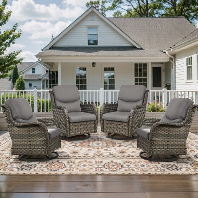 POCASSY Outdoor Swivel Rocker Patio Swivel Chairs Set of 4, 6" Thick Seat Cushions All Weather Swivel Glider Chairs with High Back for Porch - Beige
