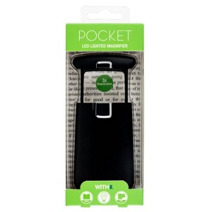 - WITHit Lighted Travel Magnifier, Black - 3X Magnification, LED Portable Magnifying Glass for Reading, Portable, High Quality Plastic Body, Batteries Included