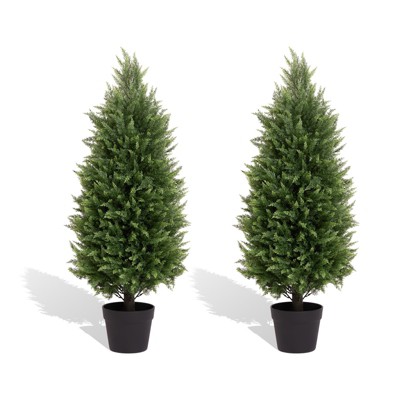 poetree 3/4/5/6ft Faux Cedar Tree Topiary in Pot,Set of 2,Fake Tree for Home Outdoor/Indoor Decor