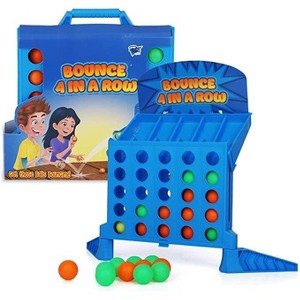 POINT GAMES BOUNCE FOUR IN A ROWWe believe in making toys and games that are both fun and educational. This board game will do just that!About:Keep kids entertained and focused with friendly and competitive 4 in a row gameBounce 4 in a row game combines the classic strategy game with a spin. Point Games' exciting and fun game in which players strategically throw their balls and bounce it on the table using the included backboard to get their shot in. Two players bounce the lightweight, colorful balls into the grid. Remember, the balls must hit the table before going in. Keep bouncing balls, trying to fill the holes in the grid vertically, horizontally, or diagonally. Players can also compete at the same time trying to be the first player to get 4 balls in a row of their color. Once a player gets 4 in a row of their color they win the game! Then when the game is over, fold the grid into a handy storage case.What you get: