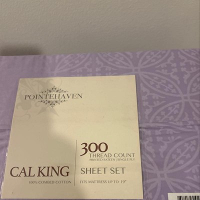 Pointehaven 300 Thread Count Printed Cotton Sheet Set features a tone-on-tone print for subtle, affordable elegance. Made of 100% Cotton, these sheets are cool and breathable for a comfortable night's rest. Set comes in 6 colors: White, Bone, Sage, Blue, Lavender, and Gray. Coordinating duvet cover and pillow shams are available separately.