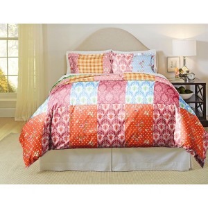 These Pointehaven Clarissa duvet set showcases a colorful patchwork design and different floral patterns in vibrant colors. Available in 3 different sizes