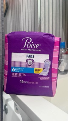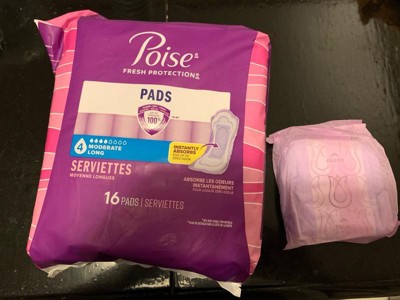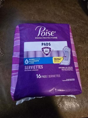 • POISE INCONTINENCE PADS: 16 incontinence and postpartum bladder leak pads, 4 Drop Moderate Absorbency, long length (16 pads total)​