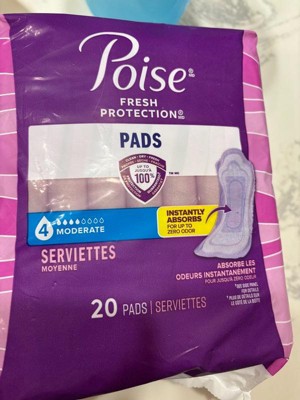 Enjoy up to 100% clean, dry and fresh protection guaranteed* with Poise Incontinence & Postpartum Pads for Bladder Leaks. Unlike period pads, which are meant for menstrual needs, Poise pads are designed to offer protection against light bladder leaks. These disposable incontinence pads instantly absorb for up to zero odor and rapidly lock away more wetness** for amazing dryness. In fact, Poise incontinence pads for women are made with odor-reducing material and helps control odor for up to 12 hours. They also come with a moisture-wicking top layer that is designed to feel dry throughout wear. Plus, our pads for women are 25x drier than the leading period pad, offer up to zero leaks, and deliver up to 12 hours of protection. Each bladder leak pad features a ContourFit design, making it softly curved to help prevent bunching and has a wider front and back than in the middle to help keep you comfortably protected. Poise Incontinence & Postpartum Pads for bladder leaks are available in 3 Drop Light, 4 Drop Moderate, 5 Drop Maximum, 6 Drop Ultimate, 7 Drop Ultra, and 8 Drop Overnight absorbencies. Shop for Poise discreetly by having it shipped directly to your door or pick up curbside. Poise adult incontinence products are HSA/FSA-eligible in the US — check with your provider for coverage details. (*Purchase by 12/31/26. All requests must be postmarked within 30 days of purchase. Online access required. Limit 1 per household. Original receipt/UPC required. Restrictions apply. See Poise website for details) (**vs the leading period pad)
