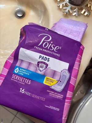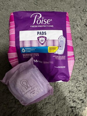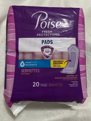 • POISE INCONTINENCE PADS: 132 incontinence and postpartum bladder leak pads, 4 Drop Moderate Absorbency, regular length (132 pads total)​
