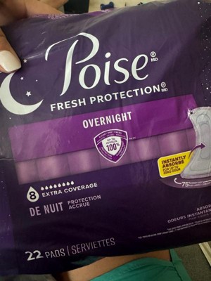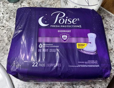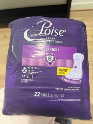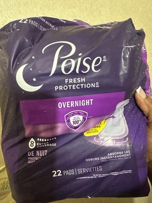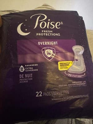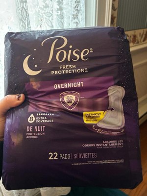 • POISE OVERNIGHT INCONTINENCE PADS: 44 incontinence and postpartum bladder leak pads, 8 Drop Extra Coverage (22 pads total)​