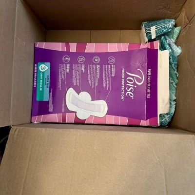 [This review was collected as part of a promotion.] I received 28pads from Influenster and Poise in exchange for my honest review. Pads are 3 drop ultra thin with very soft top material. They are perfect size and absorb very well.