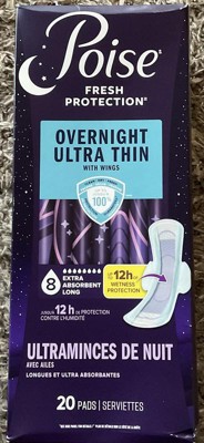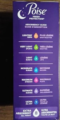 [This review was collected as part of a promotion.] Poise 8 Drop Long Overnight Ultra Thin Pads provide exceptional absorbency in a discreet, comfortable design. Their extra length ensures reliable coverage, while the soft, stay-dry surface and odor control technology offer confidence throughout the night.