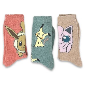 Ready to catch 'em all? This 3-Pack of Pokémon Fuzzy Crew Socks will keep you extra cozy in air-conditioned spaces and in the cooler months! Featuring your favorite characters Eevee, Mimikyu, and Jigglypuff, you will have every Pokémon fan turning your way. These are the perfect gaming socks. Soft and warm "cozy" throughout provides added comfort.