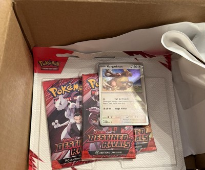 The featured Kangaskhan promo card is decent with vibrant artwork. The three included booster packs provide a solid chance at pulling rare or competitive cards from the Destined Rivals set.