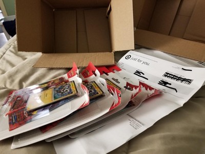 The blister packs were stuffed into a box that barley fit them causing the package to bend and it damaged the packaging along with the promo cards. This is the third Pokemon item target has set that has been damaged.